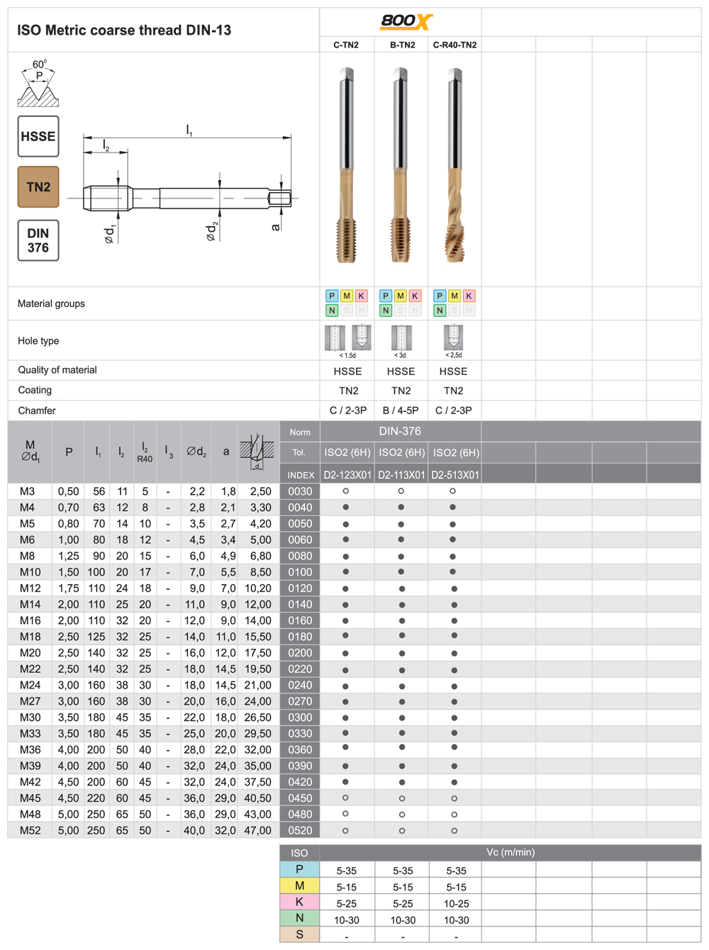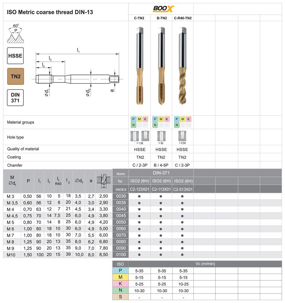 Inovácia série 800 (do 800 Mpa). Rozšírená aplikačná možnosť na obrábanie ocele a nerezových materiálov a neželezných materiálov. Nástroje sa vyrábajú z HSSE ocele s 5% obsahom kobaltu. Mikrogeometria a kombinácia povlakov TiAlN + TiN umožňuje obrábanie ocele do 1000 Mpa ako aj nerezových materiálov a kyseline odolným nerezovým materiálom. Vyznačujú sa dvojnásobnou životnosťou oproti sérii 800.