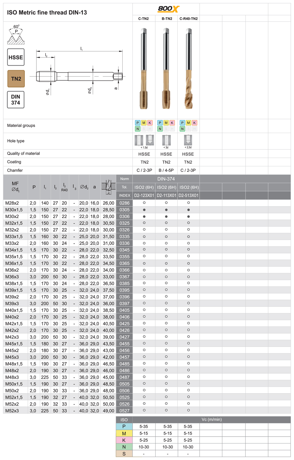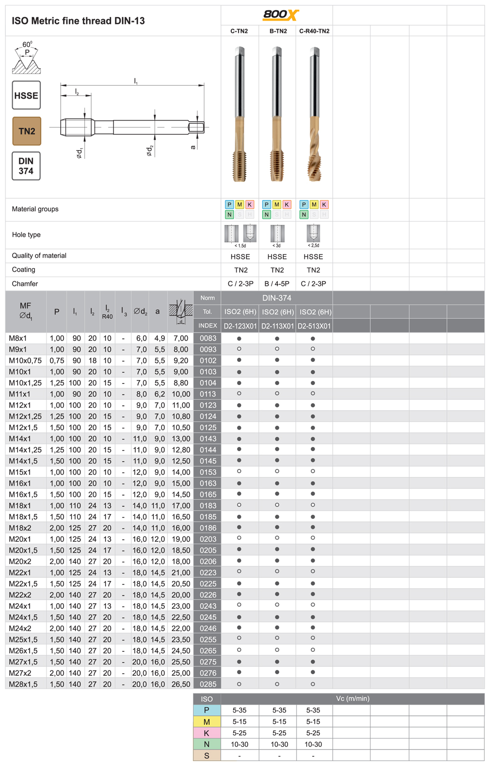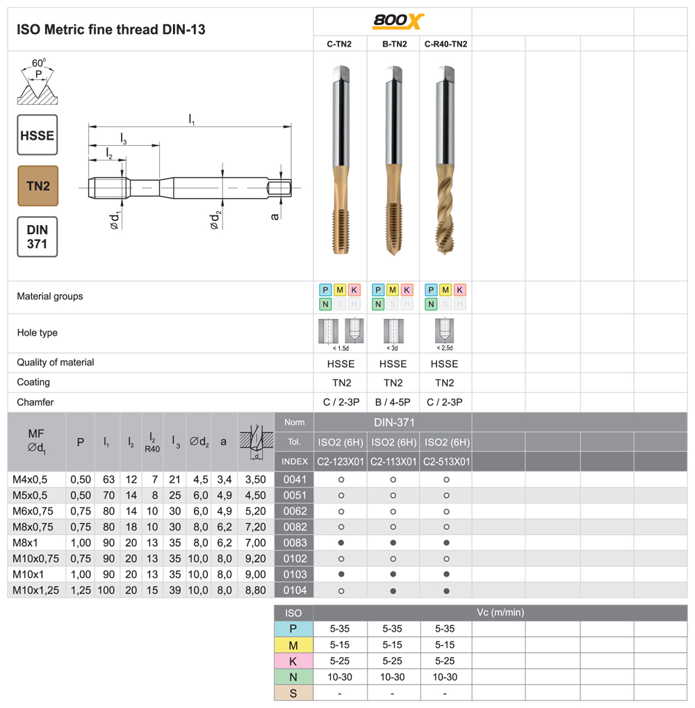 Inovácia série 800 (do 800 Mpa). Rozšírená aplikačná možnosť na obrábanie ocele a nerezových materiálov a neželezných materiálov. Nástroje sa vyrábajú z HSSE ocele s 5% obsahom kobaltu. Mikrogeometria a kombinácia povlakov TiAlN + TiN umožňuje obrábanie ocele do 1000 Mpa ako aj nerezových materiálov a kyseline odolným nerezovým materiálom. Vyznačujú sa dvojnásobnou životnosťou oproti sérii 800.